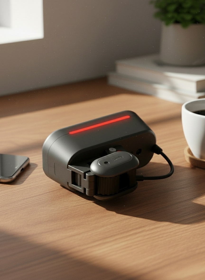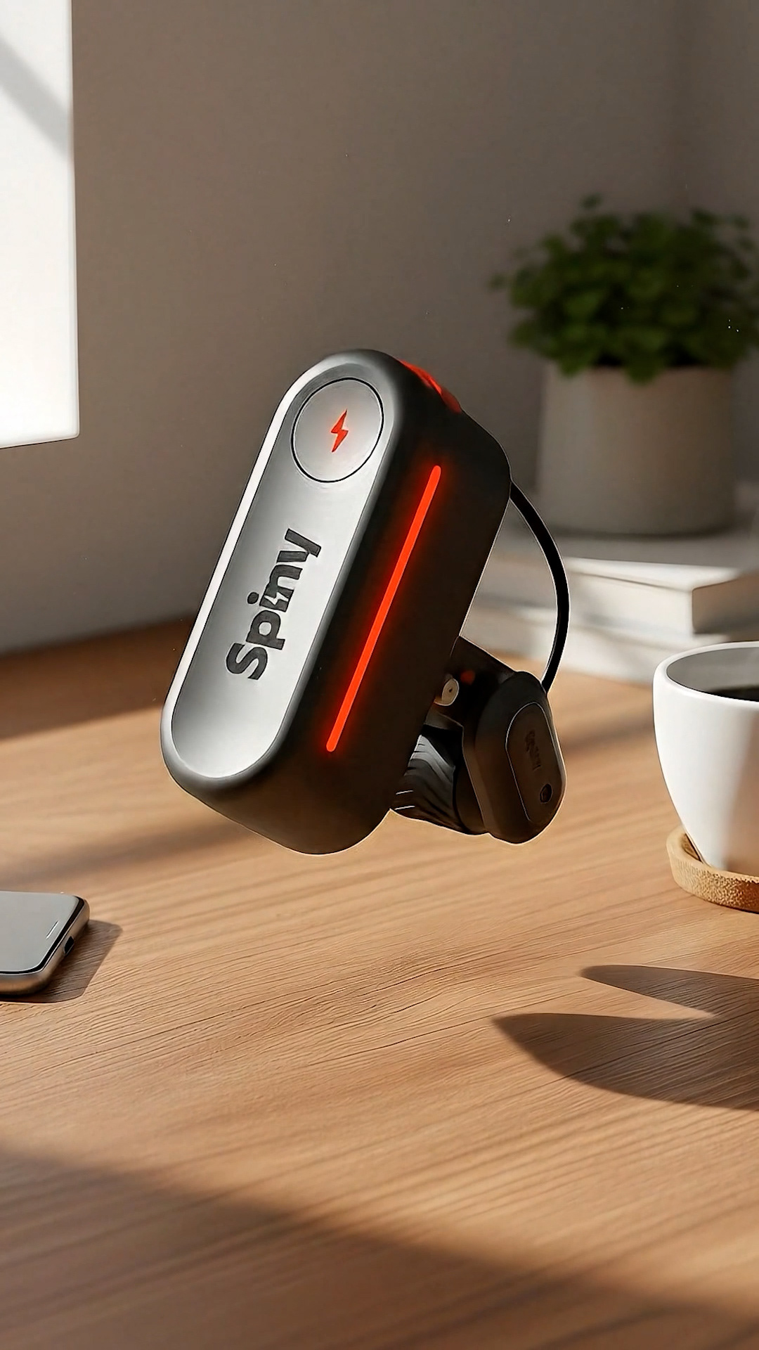 Fully AI-generated 3D video visualizing Spiny in a home setting. The device levitates over a table, evoking the sense of freedom and playful motion it brings — a surreal, imaginative take on everyday mobility.